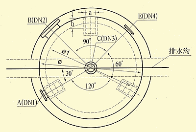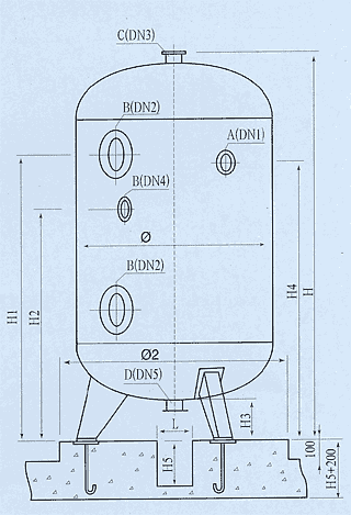 管口代號(hào): A——進(jìn)水口 B——入孔 C——進(jìn)氣 D——排污口 E——出水